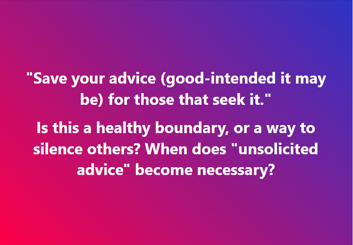 Is this a healthy boundary, or a way to silence others? When does “unsolicited advice” become necessary?