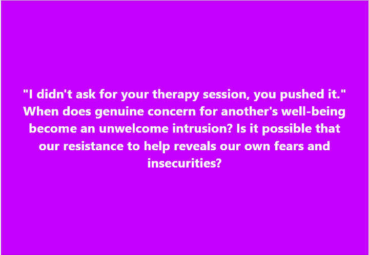 When does genuine concern for another’s well-being become an unwelcome intrusion? Is it possible that our resistance to help reveals our own fears and insecurities?