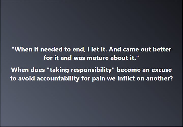 When does “taking responsibility” become an excuse to avoid accountability for pain we inflict on another?