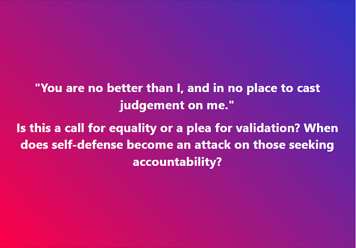 Is this a call for equality or a plea for validation? When does self-defense become an attack on those seeking accountability?